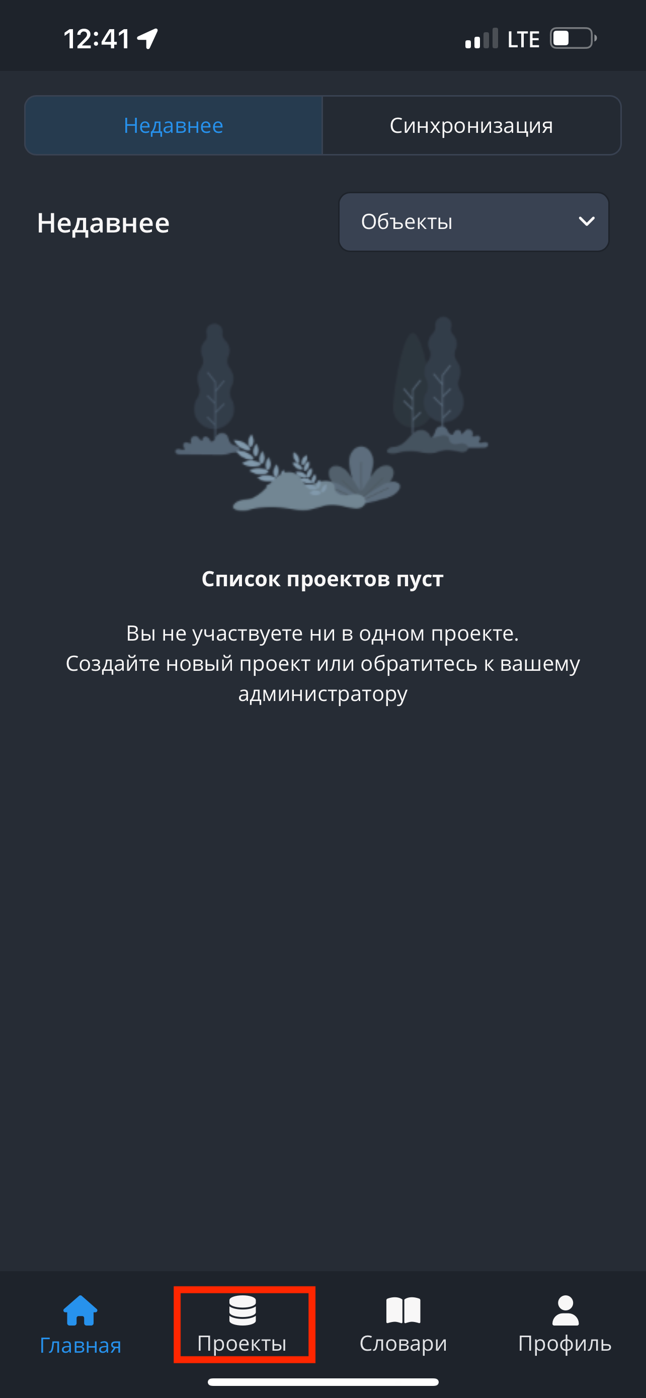 - Откройте в приложении модуль "Проекты". Выберите интересующий вас проект, нажмите на него.
