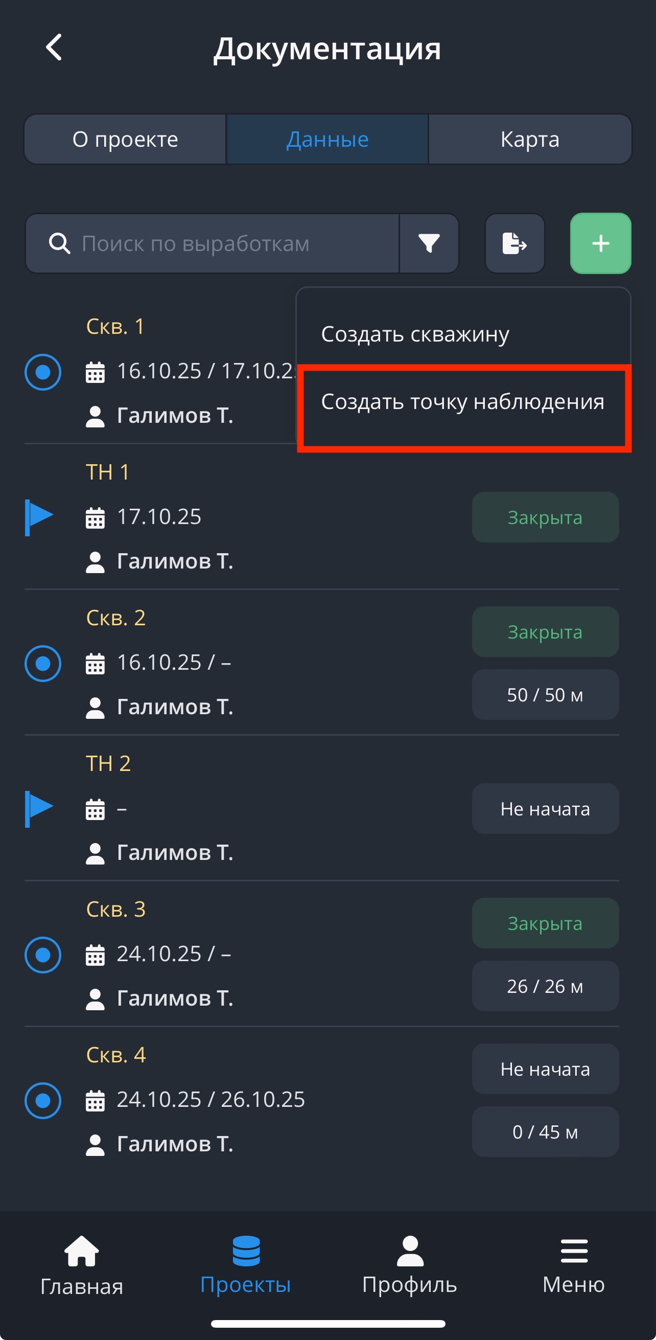 Для создания точки наблюдения и последующего заполнения информации по ней необходимо выполнить следующие шаги:
