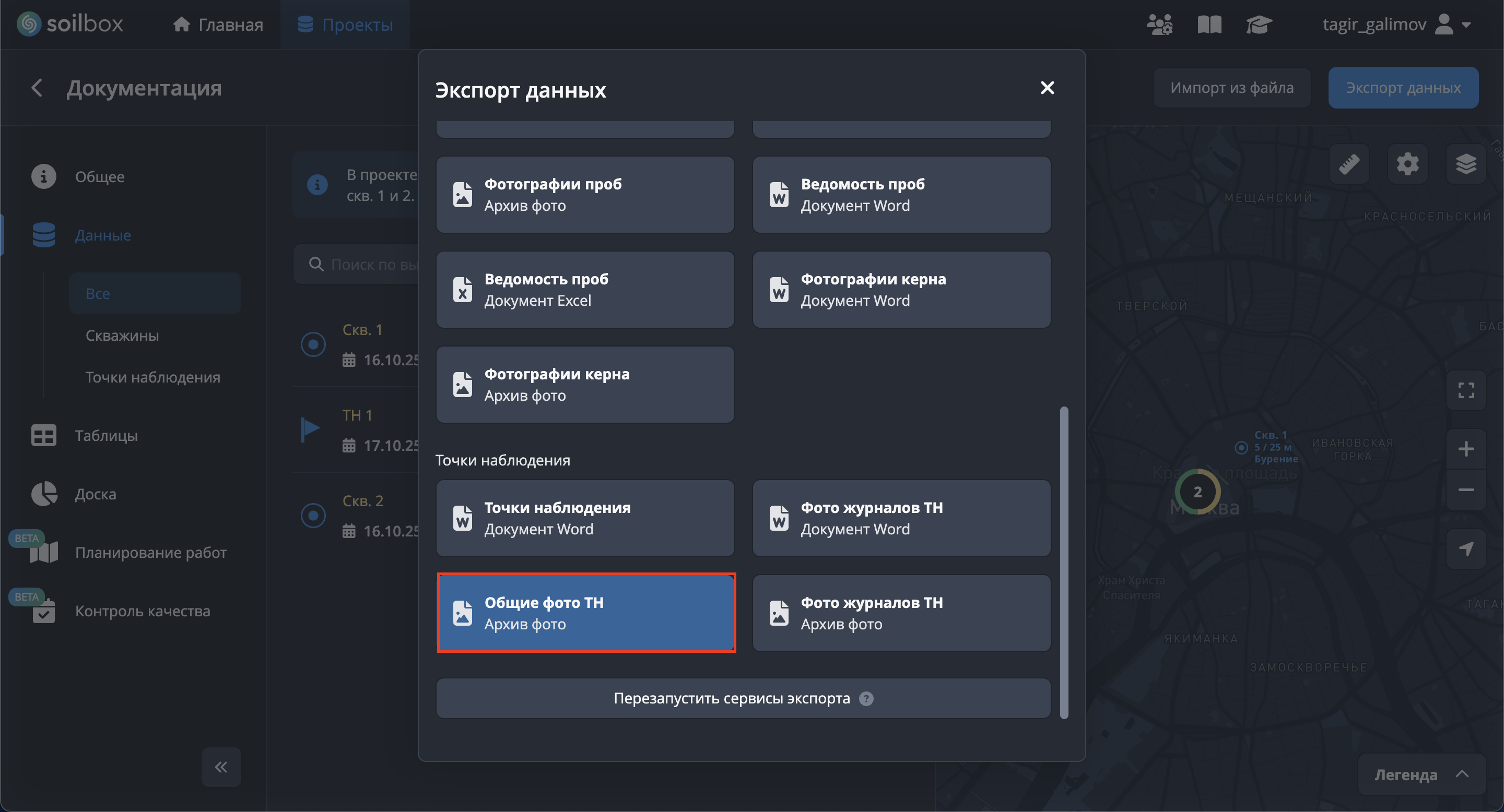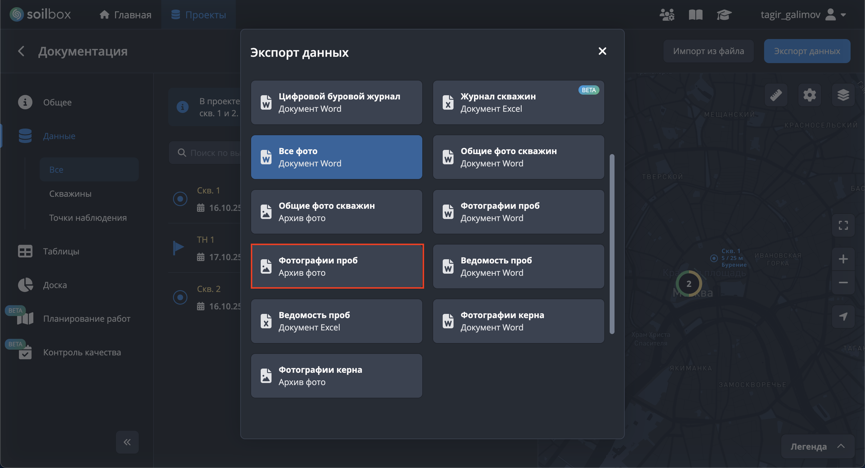 Экспорт фото проб невозможен без выбора скважин.
