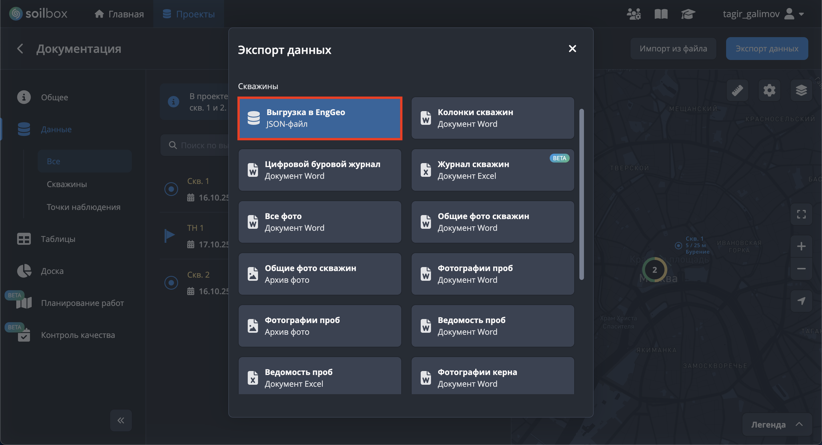 Выгрузка данных в EngGeo (JSON)