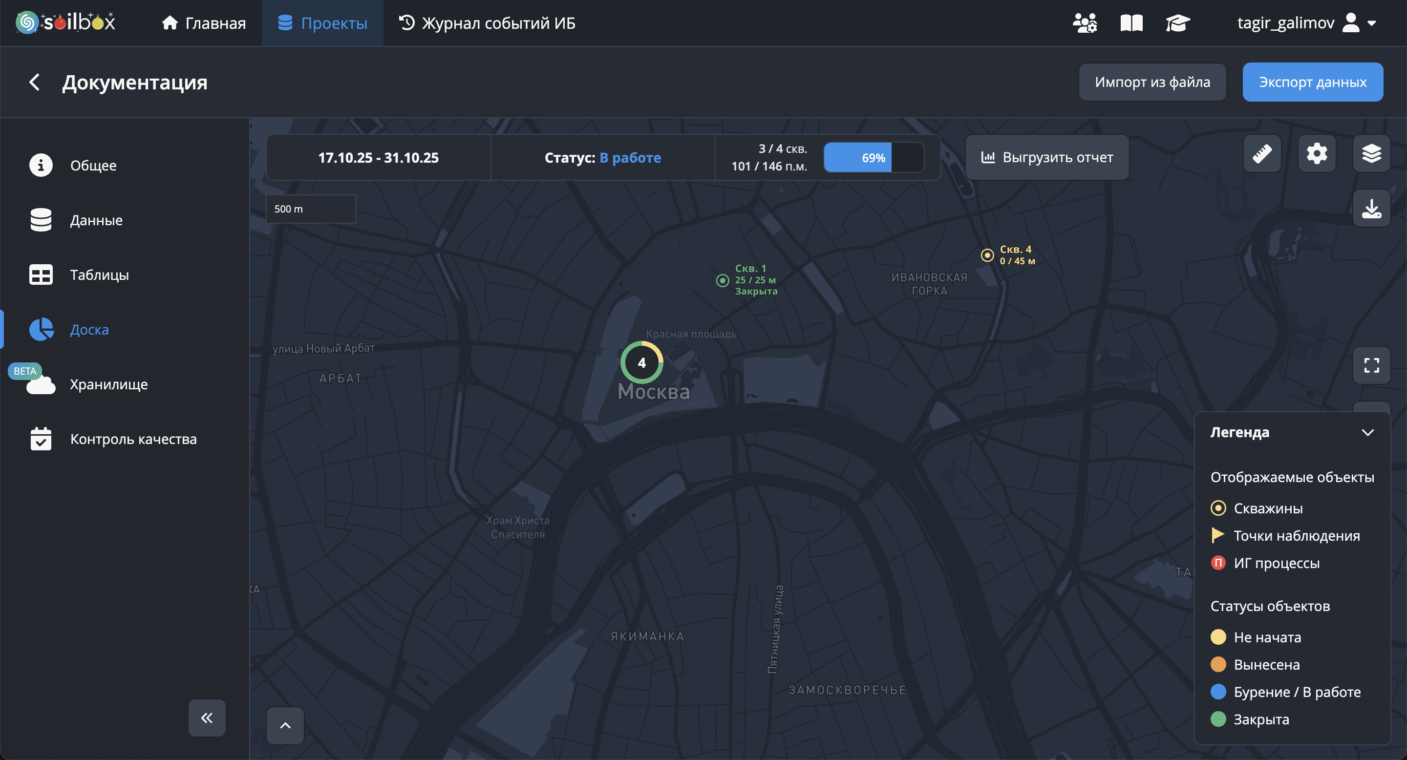 Отображаемые объекты (Скважины, Точки наблюдения, ИГ процессы).